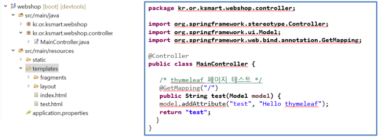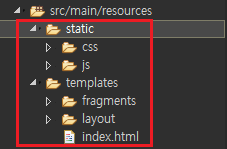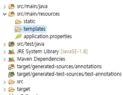 >> resources 폴더 내에 templates 폴더에 메인페이지가될 html파일 생성